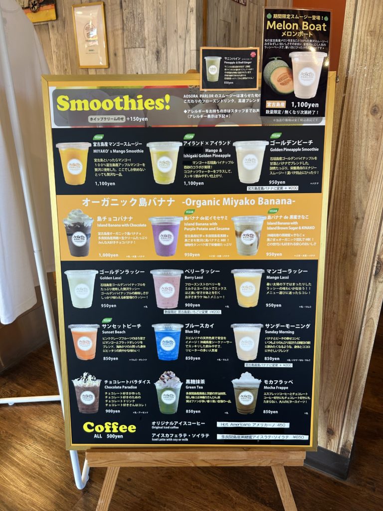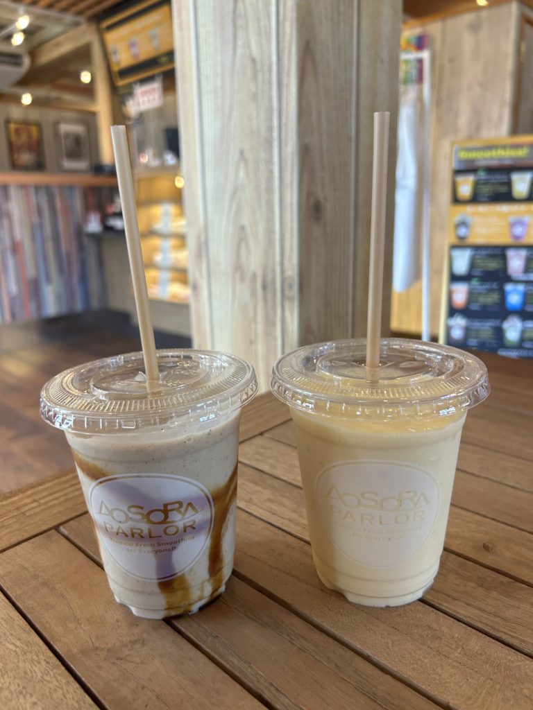 冷たいスムージーを飲みながら海風に吹かれる時間は、本当に贅沢。